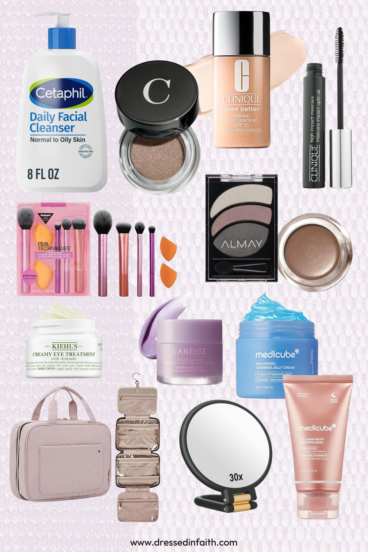 Another favorite product is this facial cleanser I use daily. It’s great for sensitive skin and does a great job of removing my makeup. This Almay eye shadow trio is another favorite as well as my eyebrow powder. And I love Real Techniques makeup brushes.