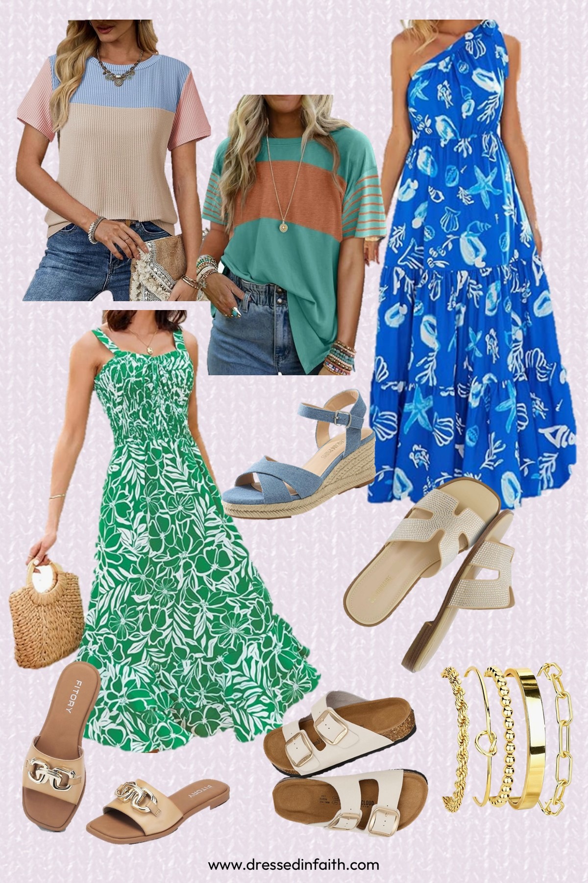 I have this great PRETTYGARDEN vacation dress in my closet – it comes in lots of great patterns and colors. Another pretty summer dress is this GRACE KARIN tropical green print dress. It is also available in different prints. Here are two cute casual color block tops – this Dokotoo crew neck top and this Dokotoo knit top.