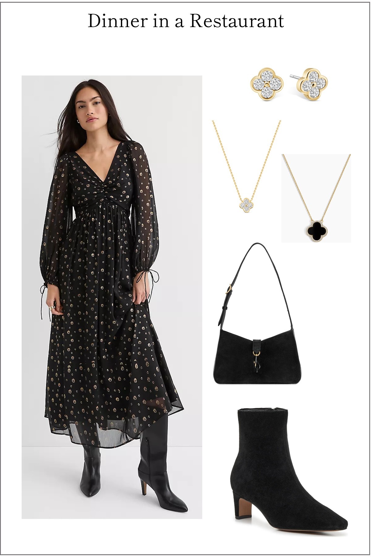 I included this pretty dress in my what to wear to a holiday party post. However, I think you could certainly wear it for Thanksgiving Day and beyond. Black boots keep the look more casual than formal.
